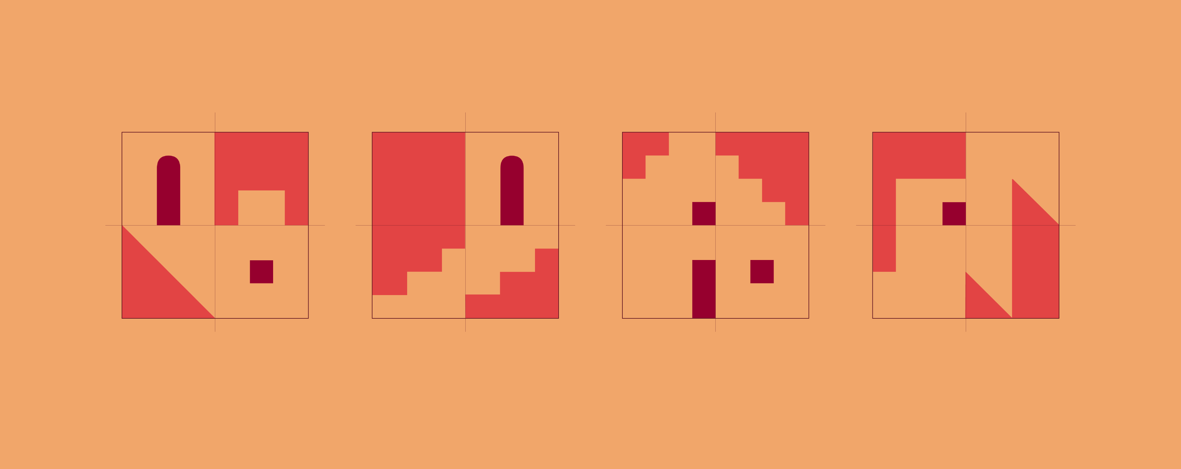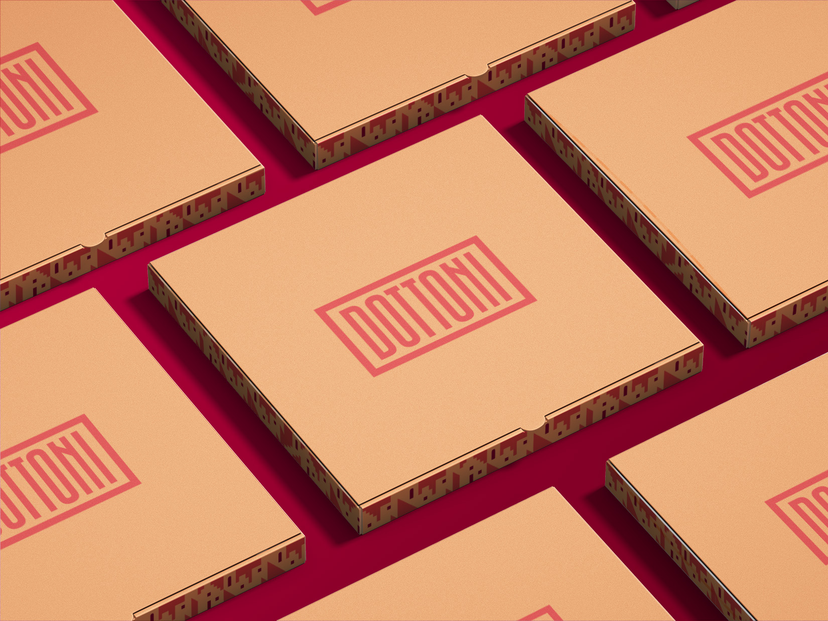 The identity of the Italian pizzeria Dottoni is an ongoing project under development, designed based on a modular compositional system. The modules, including the logo, derive their forms from the historic dwellings in which the business is located. The identity system is built around visual